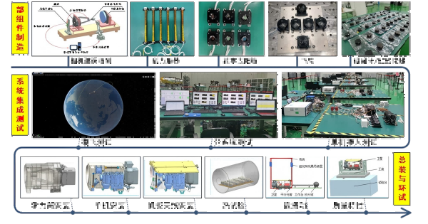 图2. 攻克了微纳光学卫星流水化批产设计技术,发明了光学相机快速精密装调与标定、姿控单机高精度标定与在轨使用策略优化、通用化卫星单机环试智能监控等各类部组件批产设计技术和装置,研制了多星多阶段并行自动化智能集成测试系统,建立了面向批产卫星的脉动式总装与环试流水线。